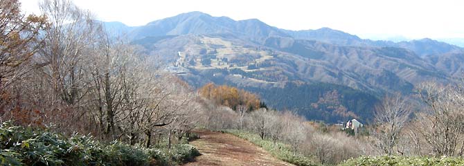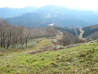 桧峠の道路脇にある登山道からスキー場のゲレンデに出るが、このゲレンデが異常に長い!。