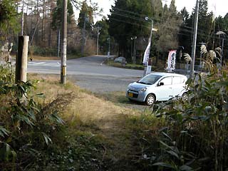 15:09 駐車場着 広場にあやしい一団がテント等を設営(!?)