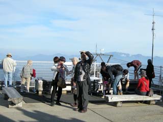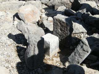 11:28 岩がごろごろ、中央石を積み上げたところ(?)が頂上。(左遠くに富士山が見えた)