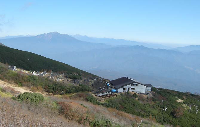 9:40 女人堂と遠く左は乗鞍岳。(その後方に槍ヶ岳)