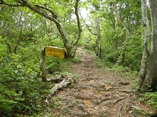 | 9:56 急な岩登りが終わると、右に平坦な尾根歩きが続く |