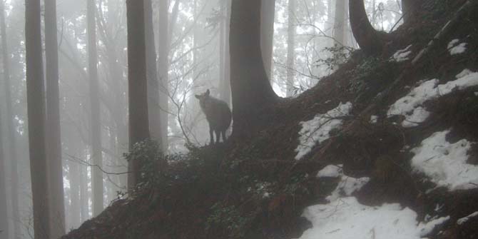 (カモシカ君のつぶやき=この雨降りに物好きなおやじだ)