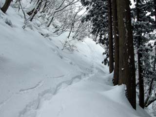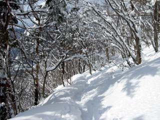 10:48 林道接点からの登りの雪が深い。