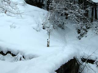 と〜ちゃんの踏み跡からさらに膝上まで沈んでします。