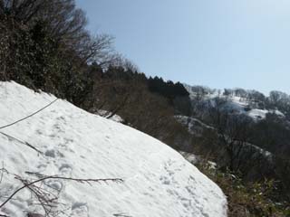 10:25 犀鶴林道登山口(記念碑は雪の下)