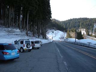 12:30 駐車場着 (二人の若者夫婦はヒッチハイクで国道を・・・・)