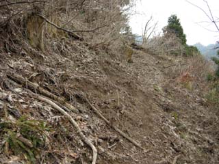 10:19 丈競山避難小屋がかすかに見えてきた。 急登に挑む!(遠目に見ると恐い?)
