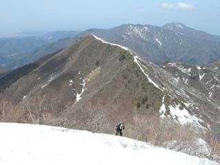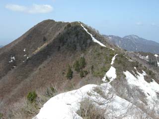 12:10 北丈競山への稜線(後方右から富士写ヶ岳、小倉谷山、火燈山)