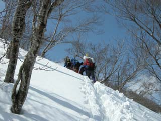 9:15 カンジキを着け登山口Aを出発(左方向)