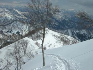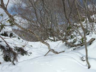 1180mピーク地点でかなりラッセルに疲れて、頂上をあきらめようとしたが