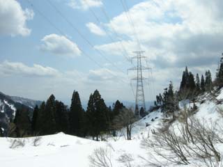 当日は雨模様で間違えて手前の送電線巡視路から登ってしまった。