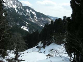 13:34 登山口B着(車が3台) 雪が融けた林道を下る