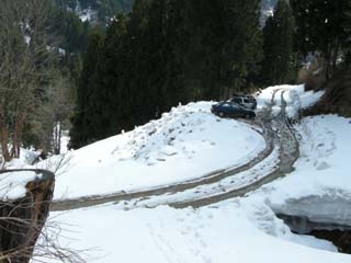 8:34 ノーマルタイヤで滑ってこれ以上行けず
