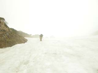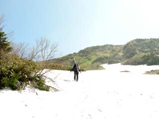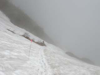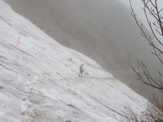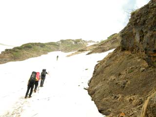 9:35 12曲がりの階段を使わず、雪渓を直登!