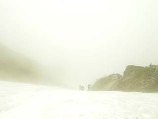 別当覗きから雪があり、甚之助避難小屋付近でアイゼンを装着(ほとんどの人?)