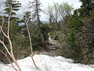 12:22 観光新道は雪が多いと聞き、砂防新道から下る