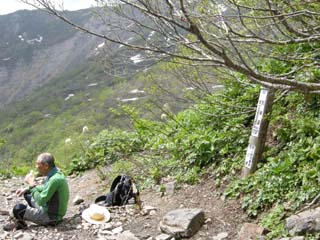 13:45 中飯場 しばらく富山の父ちゃんと話ながら下山