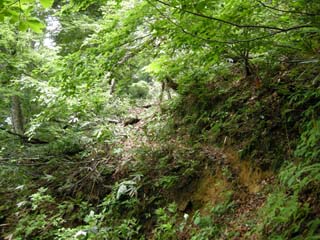 10:02 笹に捕まりながら下った急坂を、振り返る