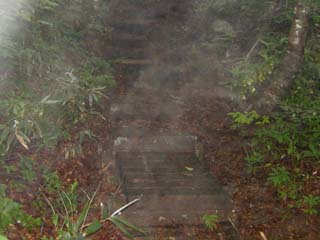 警告=下りでの石段、木道の滑ること! (端を恐る恐る下りました→汗)