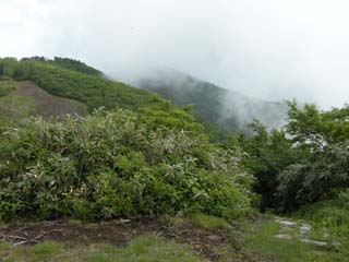 10:47 ガスがかかる伏拝へ(一端コルへ下る)