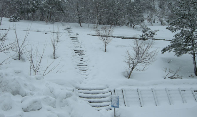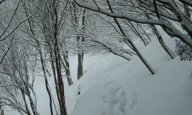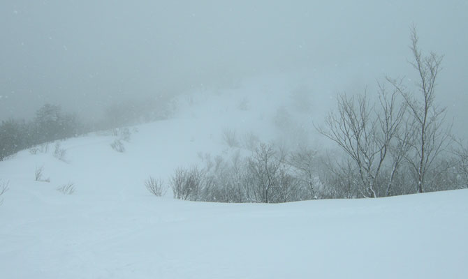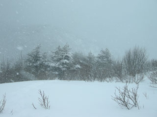 小雪は降るし、どこのお山にしょうか、と出発したが