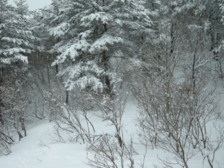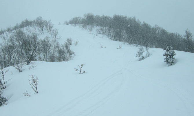 昨夜の新雪は頂上に近づくにつれ多くなり