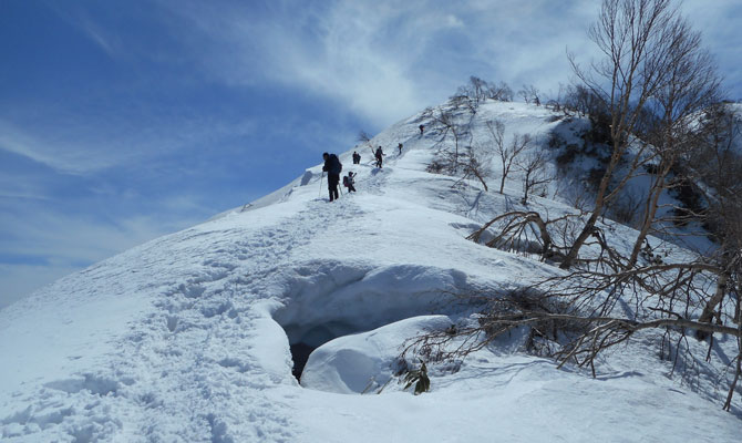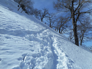 シャクナゲ平にはトラバースコースがあり、この時期ならでは。