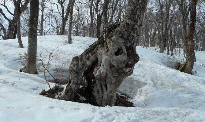 雪は緩み気味だったが、全行程アイゼンを装着(かんじきは不要)
