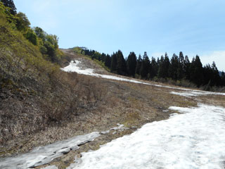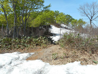 10:13 緩斜面は雪が切れる(アイゼンはそのまま)