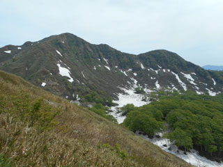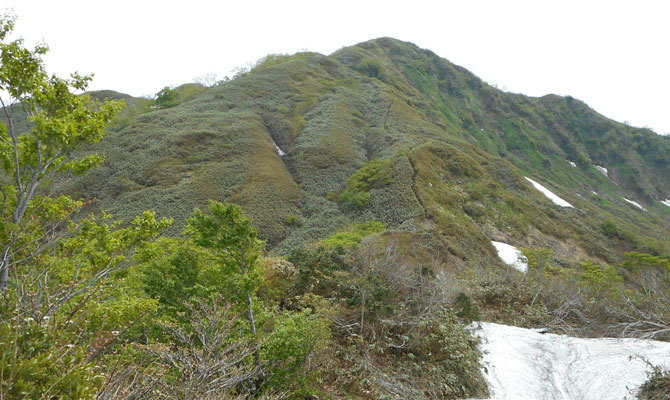 10:13 杓子岳 (なぜかピンボケ・・・アングルの関係?) 中央は経ヶ岳