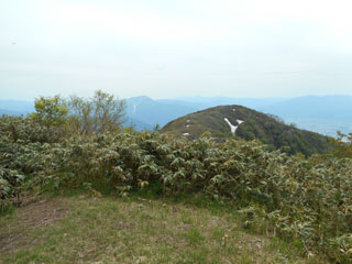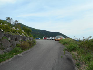 人気の山で、林道展望所の駐車場はほぼ満杯